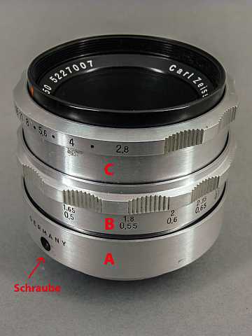 Die auseinandergeschraubten Teile sind hier sehr gut zu sehen: http://forum.mflenses.com/czj-tessar-2-8-50-disassembly-t40547.html