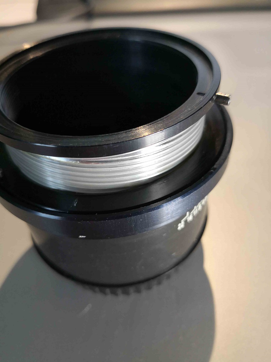 Die Farbe wird immer dunkler in Richtung Ciatim-201 und wenn man das Fett aufbringt, scheint mir das Ciatim-201 eine sehr gute Hafteigenschaft bei sparsamem Auftrag mitzubringen. Ich habe das Ciatim-201 sehr reduziert aufgebracht, so dass es, nachdem man den Helicoid ausgiebig bewegt hat, kaum noch als sichtbarer Belag zu erkennen ist (s. Bild 4).