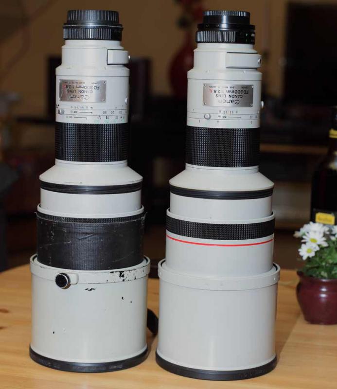 und so "kuscheln" zwei von den Dingern vor sich her.. beim zweiten, nicht Umgebauten (rechts) werde ich den Weg versuchen starten, das Objektiv über den Canon 1.4fach Original FD Konverter an das EOS System zu bringen. Dies eröffnet den Weg, das Teil sowohl an der DSLR als auch am analogen EOS System zu betreiben. Riesenvorteil, weil auch bei Analogfotografen das Ganze im System bleibt.
