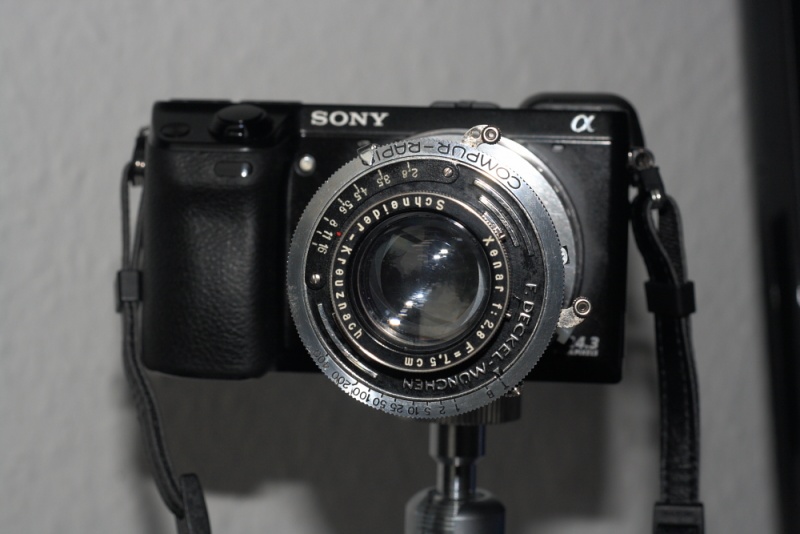 Frisch gereinigt und fit für die NEX.. Wandlerplatte, 2 x 12mm Mutter und Verlängerungstubus.. T-Einstellung am ZV.. und sonst keine Operationen notwendig.