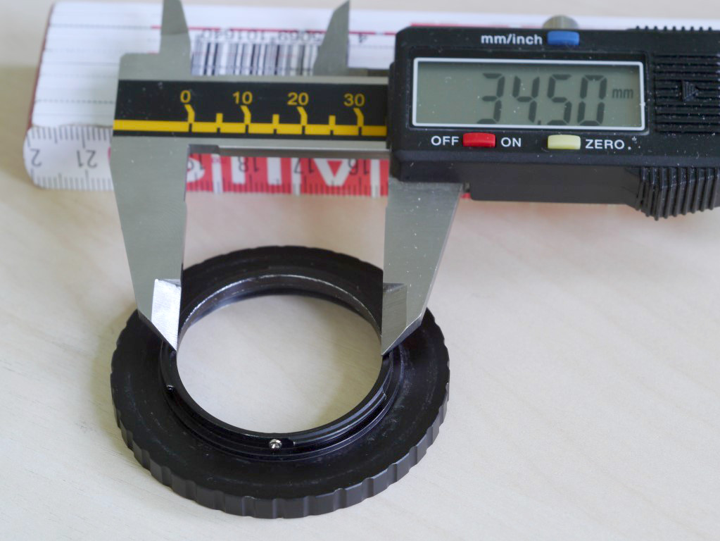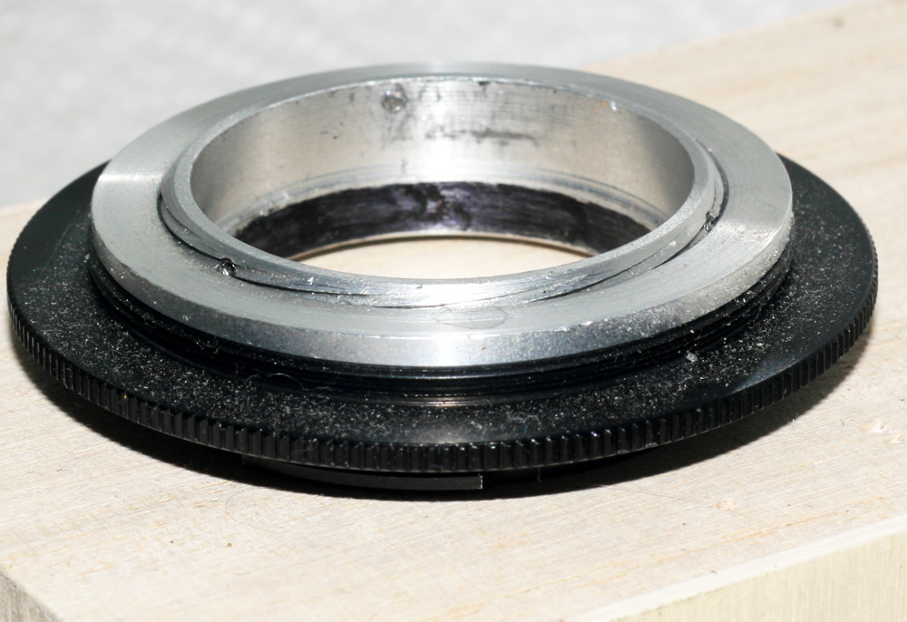 Den M42-C-Mount Adapter des C-Mount beraubt und innen auf 34 mm aufgedreht.
