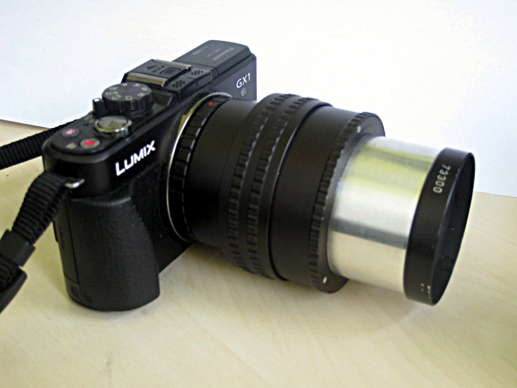 Aus Pappkarton ein Rohr gebastelt und an den M42-MFT Adapter angebracht.
