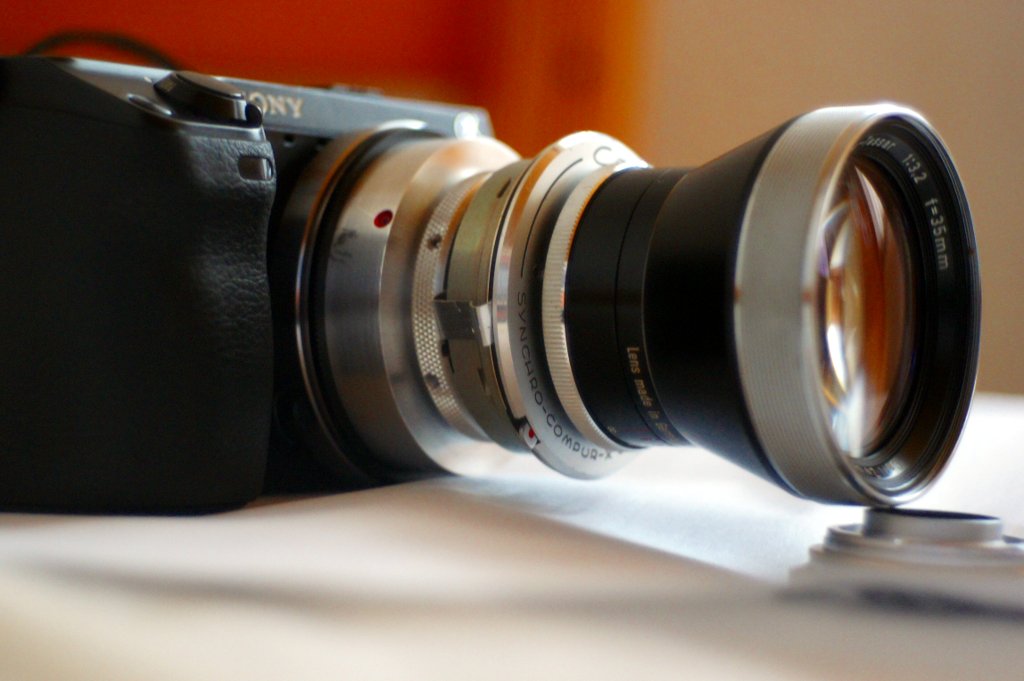 So sieht das ganze mit der Contaflex-Adaption und dem Pro-Tessar 3,2 35mm aus: