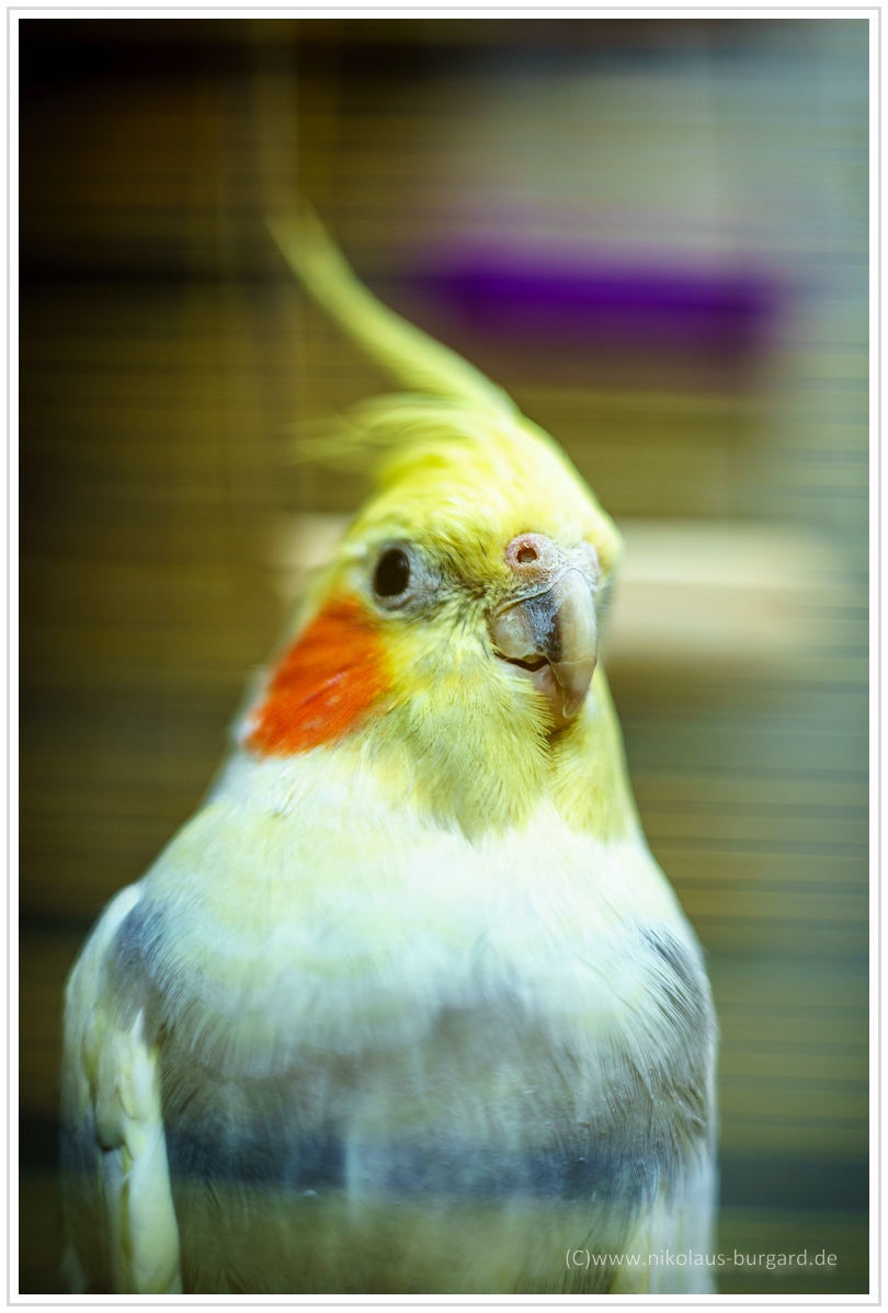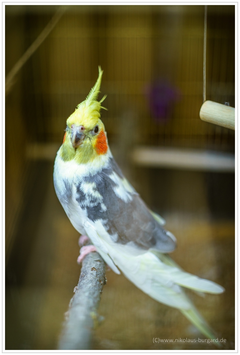 Die Vogelbilder sind durch die Käfigstangen gemacht.