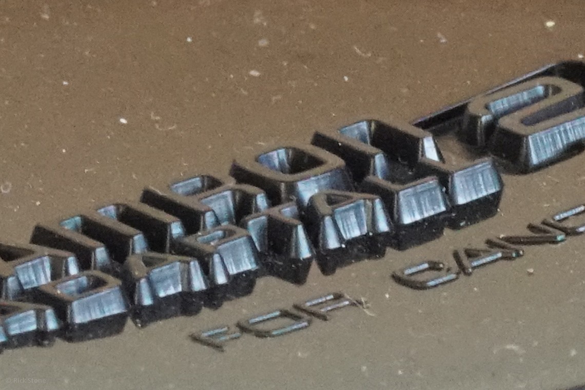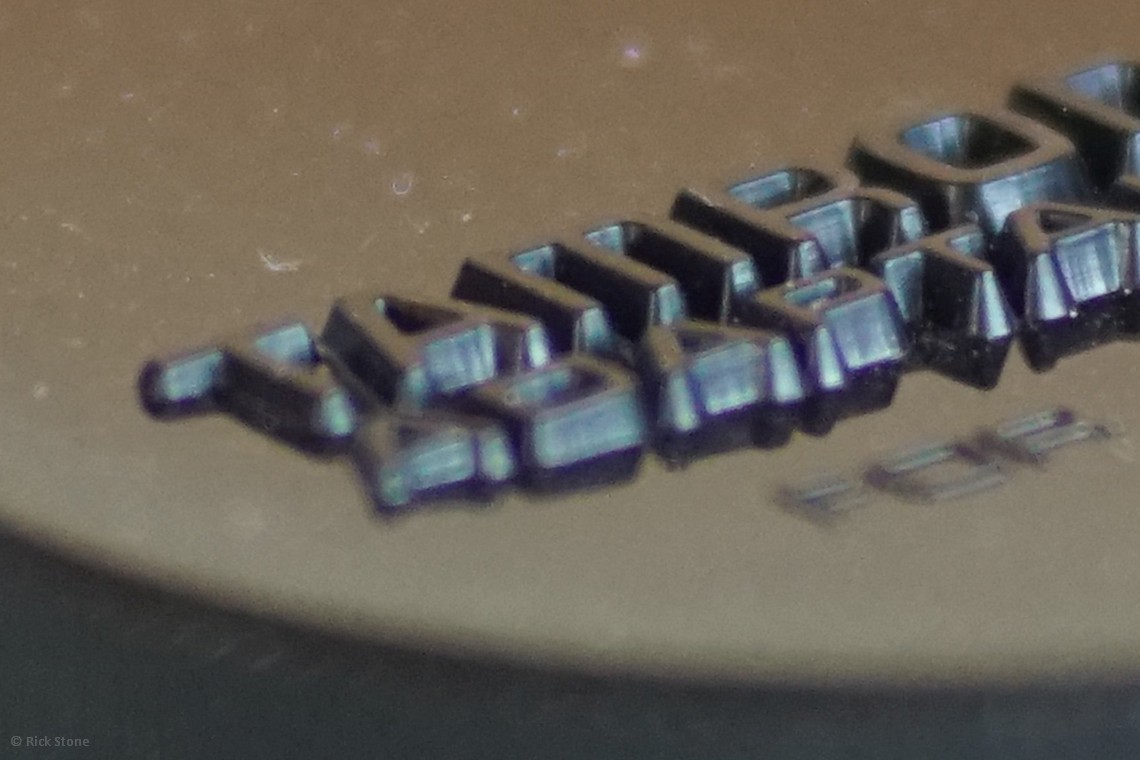 Die Belichtung und ISO hatte ich der Kamera überlassen. Beim Dach bzw. dem fokussierten Schornstein waren dies bei Offenblende 100 ISO / 1/5000 sec, abgeblendet 400 ISO / 1/500 sec. 400 ISO deshalb, weil für den ISO Range 1/500 sec als Standardvorgabe eingestellt war. Beim Tamron Deckel wurde auf das "M" fokussiert, bei Offenblende 1600 ISO, 1/500 sec, abgeblendet 6400 ISO, 1/60 sec.
