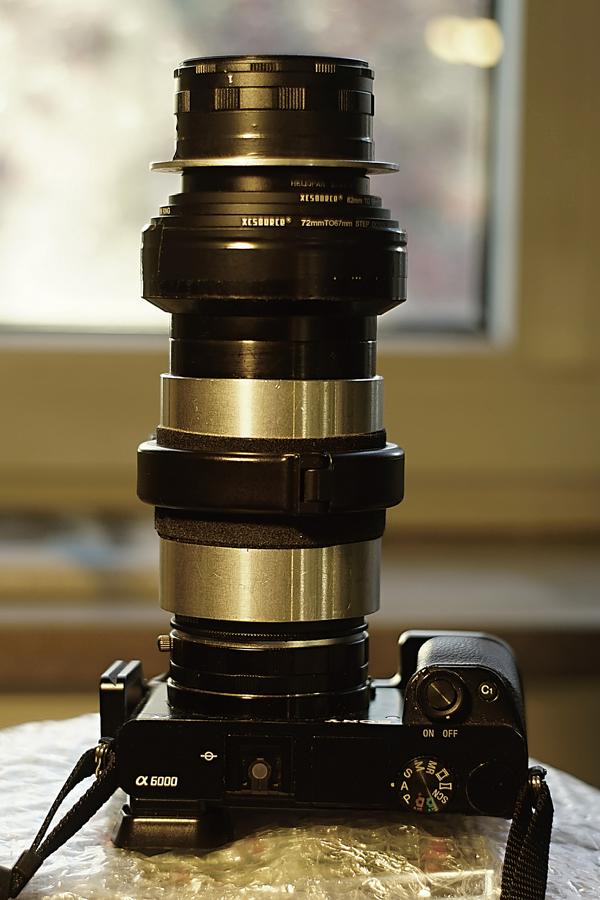 Gestern habe ich auch noch ein "Design-Objektiv" zusammengebaut und zwar aus meiner Sony A6000 mit Henrys 62,5er SFT + dem Visionar 1,6/92 und meiner größten Iris-Blende