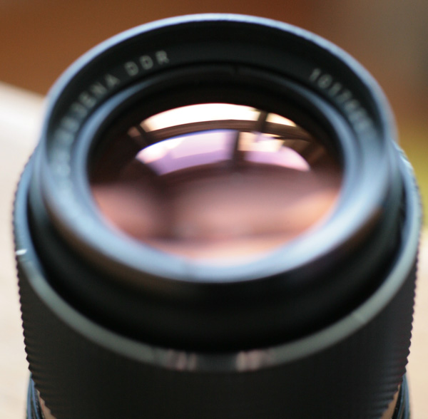 Da dieses 135er auch vor ca 15 Jahren mein Einstieg zum Adaptieren von Fremdlinsen war (damals habe ich mein Canon-FD-System um diese qualitativ mindestens gleichwertigen, aber wesentlich preiswerteren CZJ-Linsen ergänzt), möchte ich auch hier noch etwas beitragen. Dem 135er folgten ein 35er (2.4), das 20er (2.8) und das seltene 200er, auf das ich zufällig und unwissend stieß und wegen der Seltenheit "mitgesaugt" wurde. (Das 200er konnte neben dem FD 200/2.8 mit Innenfokussierung nicht konkurrieren und hat bis zur EF-Ära nur im Schrank gestanden.)