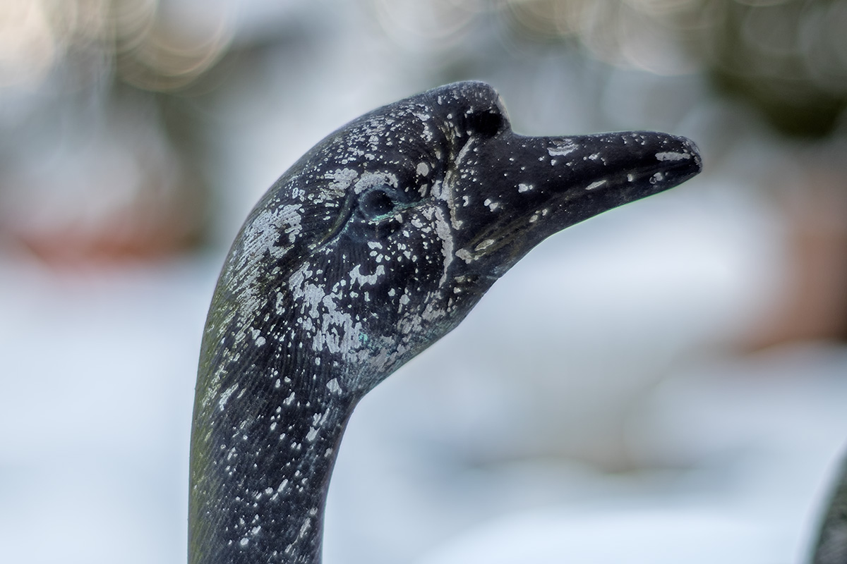 Hier ein schräger Vogel, Offenblende und min. Fokusdistanz: