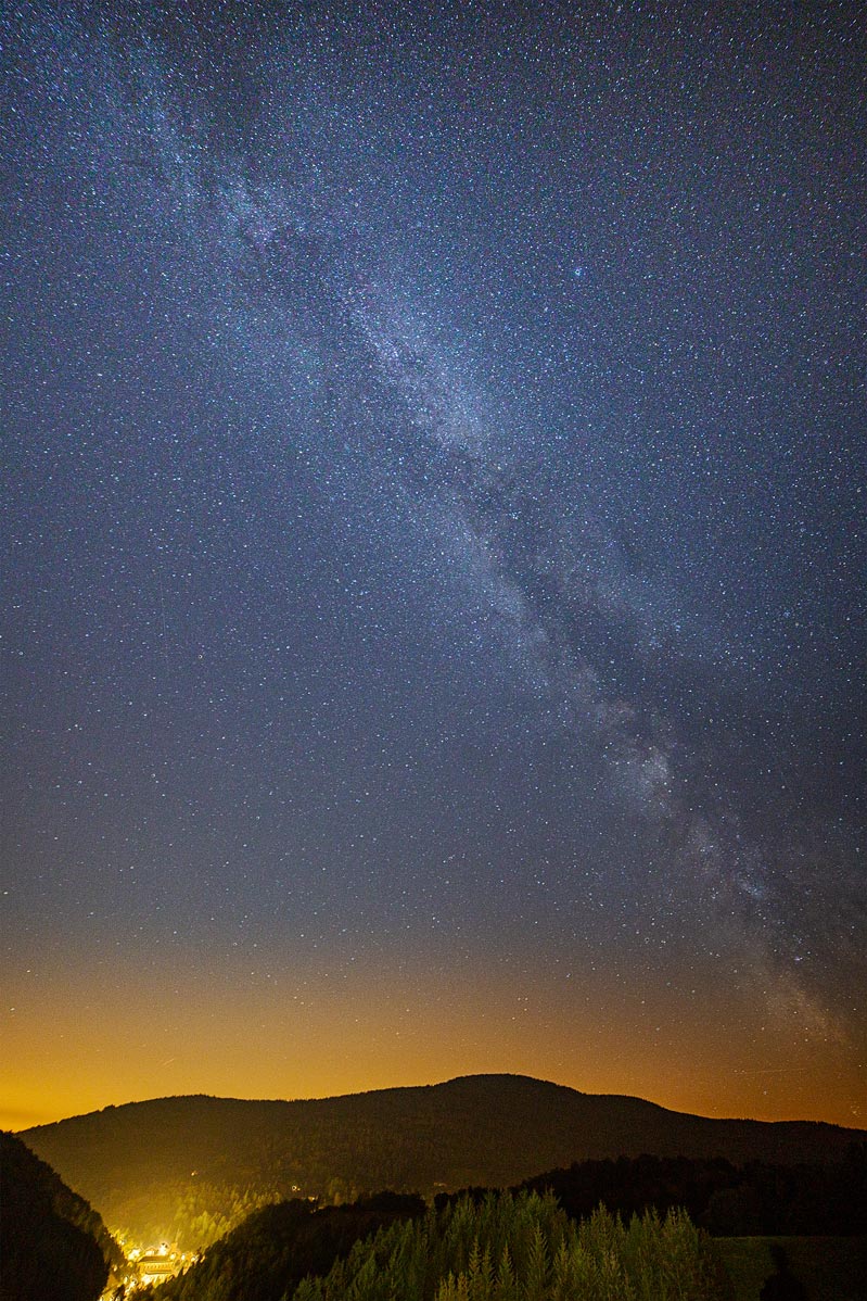 Anbei eine Aufnahme der Milchstrasse bei Offenblende, die zeigen, dass das Objektiv so schlecht nun auch nicht sein kann...