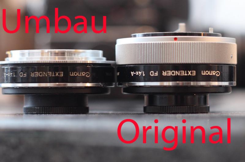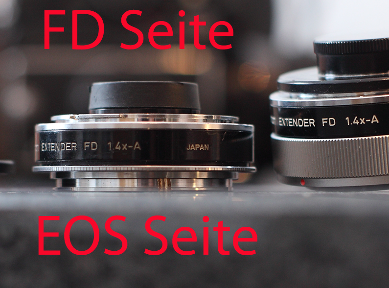Der Original FD-EF Adapter von Canon überbrückt die Register (Auflagemaß)-Differenz mit dem selben Trick: Der Canon Adapter ist genauso ein Telekonverter mit Faktor 1,26. Nur hat Canon sich beschränkt auf Objektive deren Hinterlinsen Platz lassen für den Adapter - und so können sie den Adapter mit mehreren Linsen aufbauen, und sind platzmäßig nicht so beschränkt wie diese günstigen aktuellen optischen FD-EF Adapter. Das ist also auch das selbe Spiel, das wir mit den 1.4x Canon Adaptern gemacht haben - nur hat Canon da die Möglichkeit halt den Verlängerungsfaktor noch kürzer zu machen.