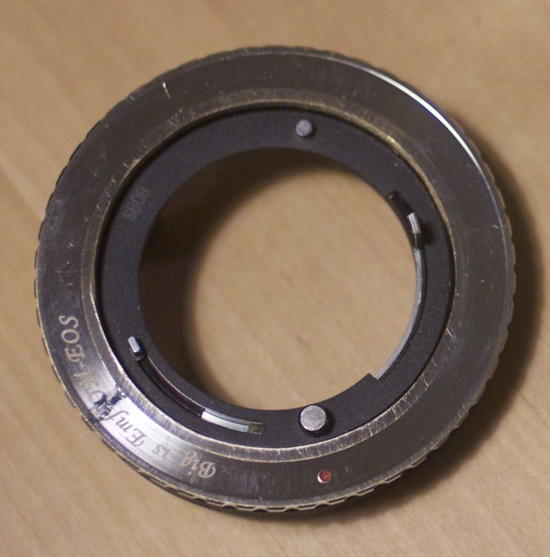 Ich empfehle auf jeden Fall, von diesen Dingern Abstand zu nehmen. Maximal taugen diese Adapter mit herausnehmbarem Glasteil, um ein FD Objektiv an die EOS zu bringen und es als Nahbereichsobjektiv zu nutzen. In den Umbauten aber liegt der Sinn, diese Objektive wieder wie früher gewohnt also vollwertige Optiken von Nah- bis Fernbereich zu benutzen. Das dadurch, das die gesamte Konstruktion wieder 2mm weiter in den Spiegelkasten zurückgeschoben wird, um bei dem alten 42mm Abstand Film/Sensorebene zur Auflage zu sitzen um das gesamte Format "auszuleuchten".