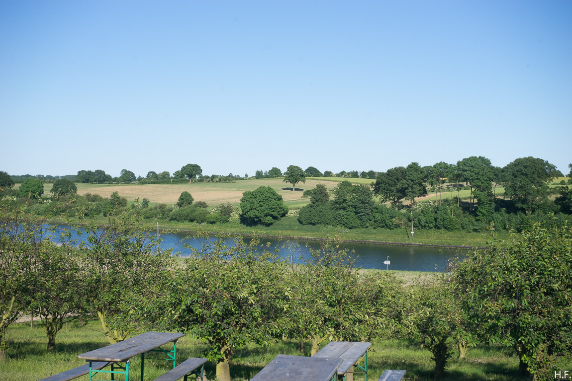 Mit dieser Kombination hab ich zunächst mal ein Bild in der Totalen rüber über die Landschaft am Nordostsee-Kanal gemacht von unserem Kaffee aus.