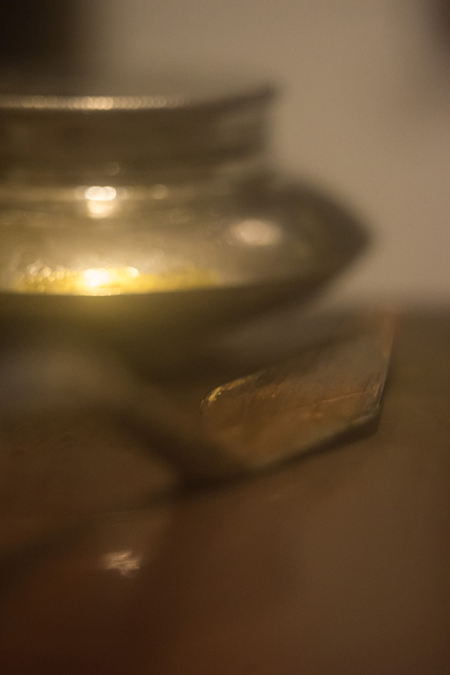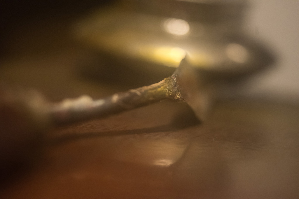 Ich habe mehrere Bilder spät abends bei Kunstlicht geschossen und die Tonwerte nur ein wenig mittels "Klarheit" in Lightroom angepasst. Motiv ist meine Malpalette, ein metallener Palettstecker (für Malmittel) und ein Malspachtel. Tageslichtaufnahmen waren farblich übrigens nicht so überzeugend, ich habe ein Foto von heute mittag deshalb in Schwarz-Weiss konvertiert. Bei Kunstlicht oder eben monochrom und in Verbindung mit dem VNEX hat diese Linse aber für mich einen ganz besonderen Reiz und wird sicher noch einige Experimente nach sich ziehen.