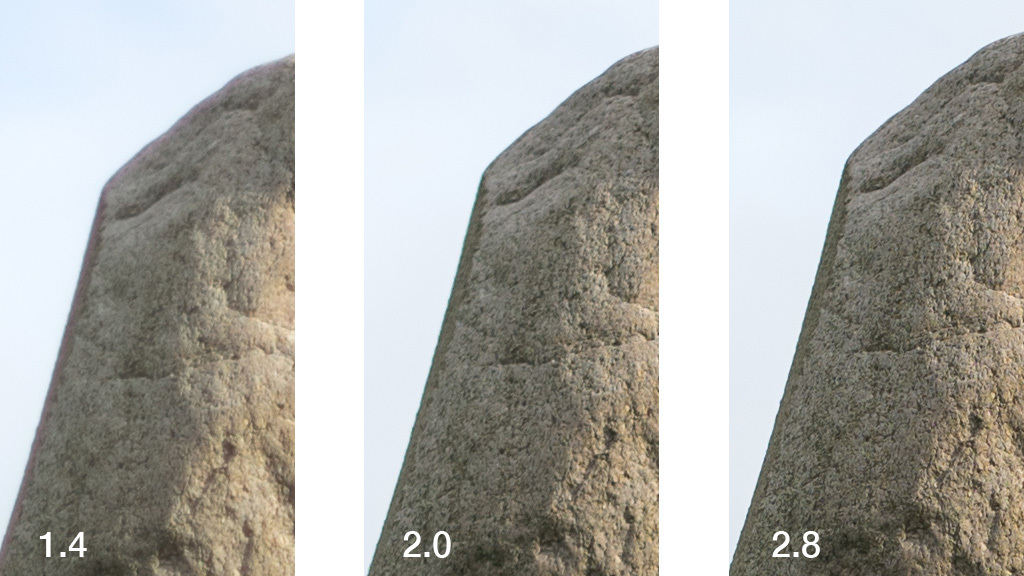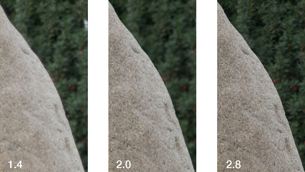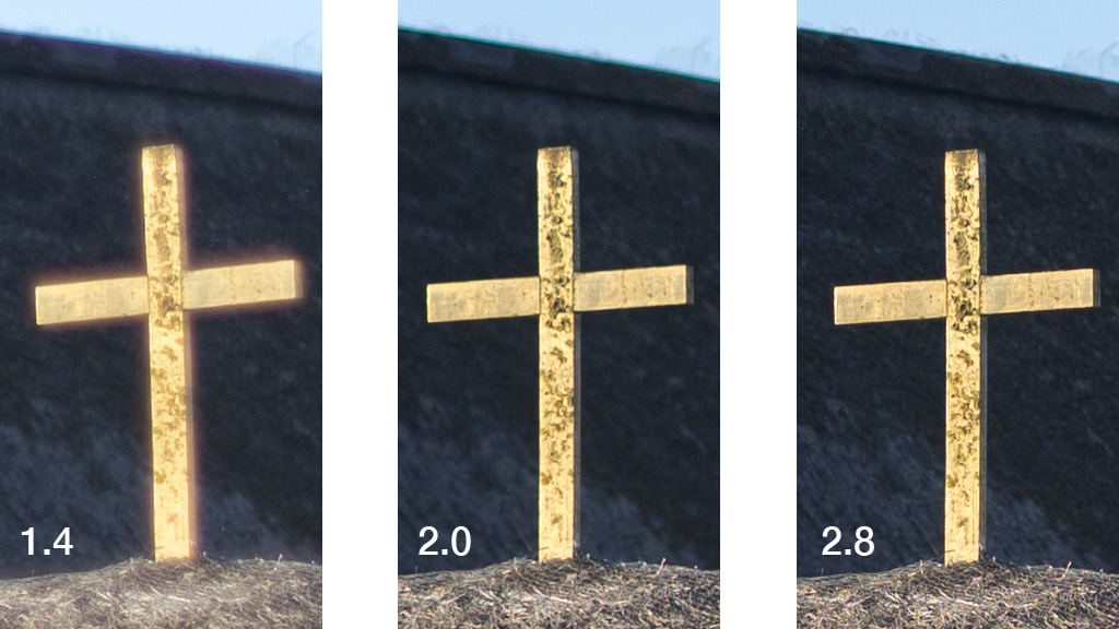 Hier fällt sofort auf, dass bei einem Fokus jenseits von 10-15m die Offenblende nur als Effekt genutzt werden sollte. Extreme Überstrahlungen/Koma, kombiniert mit Unschärfen und Vignettierung schon im Randbereich, in den Ecken wird's ganz schlimm. Im längeren Auszug des Nahbereichs machen sich diese Fehler nicht so extrem bemerkbar. Diese Fehler sind zwar bei vielen 1.4er-Objektiven vorhanden, aber hier sind sie auf einem Niveau mancher lichtstarker Linsen berüchtigter Handelsmarken. Nur eine Stufe auf f2 abgeblendet, ist im mittleren Bildbereich die Abbildungsleistung schon erheblich besser, die Ränder und Ecken bleiben dafür ein Problem.