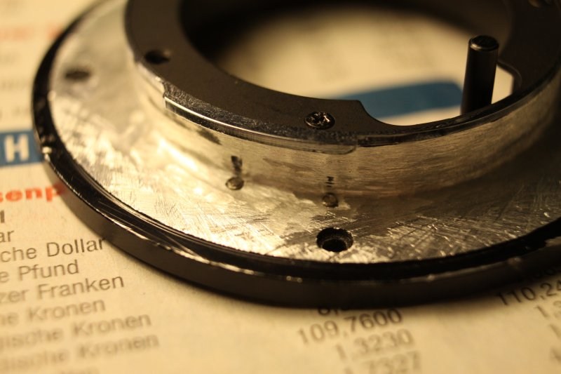 Was ich mich bei der Beschreibung dieses und auch anderer Adaptierungen frage (und was mich momentan von einem anderen Umbau abhält) ist: Wie schafft man es, das Abschleifen mit einem Dremel o.ä., jedenfalls ohne Verwendung einer Drehbank, so präzise hinzubekommen, dass der anschließend aufgeschraubte Adapter exakt rechtwinklig zur optischen Achse steht und man nicht durch kleinste Unebenheiten oder eine geringe Abweichung im Schleifwinkel ein "getiltetes" Objektiv als Ergebnis bekommt?