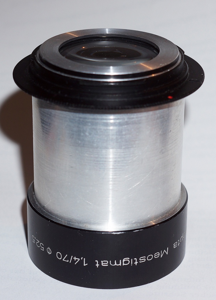 Nun muss ich für den -1mm, also den Wert, den der Tubus noch in einen M42 Adapter eintauchen muss, einen solchen auf 49mm aufdrehen und habe dann ein zumindest "Teilfokussierbares" Meostigmat 1.4/70mm, das ebenso an einem beliebigen M42 auf irgendwas Kameraadapter durch simples Einschrauben genutzt werden kann.
