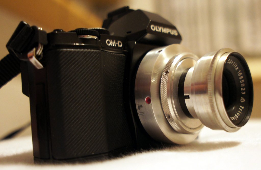 Habe das 2,9 50mm Trioplan aus Tills ehemaligem Fundus mittels 25mm Wandlerplatte und dem VmFT an die O-MD E-M5 gehängt: