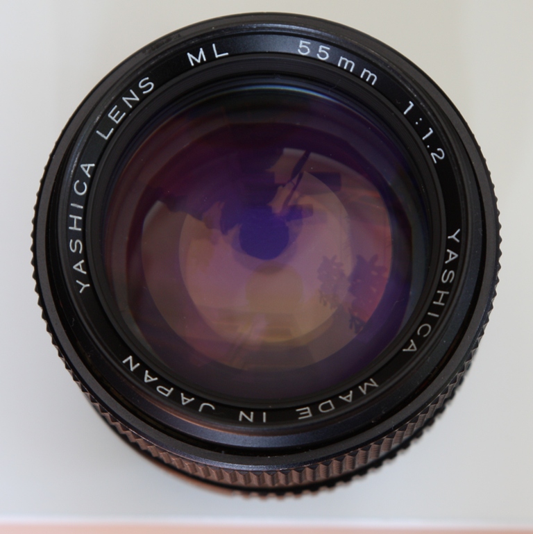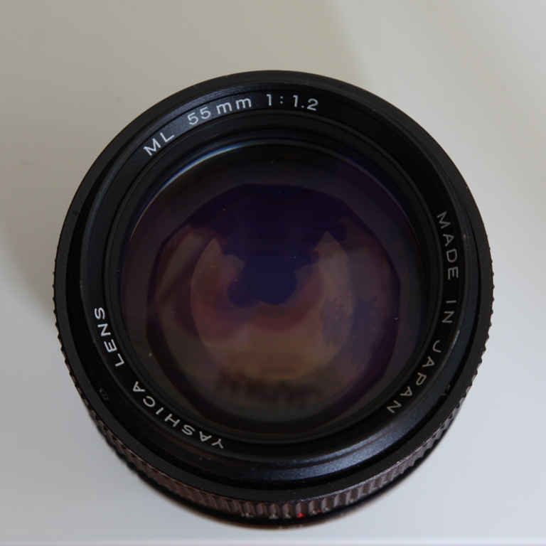 oben ist die Antwort zu sehen, bei der alten Variation der ML Linsen ist auf dem Ring zusätzlich YASHICA geschrieben. Wenn man die Linsen schräg ins Licht hält, sieht man die unterschiedliche Vergütung. Wie bei allen anderen älteren ML Linsen, fehlt eine stark gelbe Vergütungschicht. Von der älteren Version wurden auch nur ca. 1000 1.2er gebaut. Alle anderen älteren Versionen haben einen rautenförmig geriffelten Fokussierring und silberne Tubuskanten( 21mm 3.5, 28mm 2.8, 50mm 1.4 und 1.7, Bellows 100mm 4.0, 135mm 2.8, von den älteren Versionen fehlen mir noch das 24mm und 35mm 2.8) aber das 1.2 ist quadratisch geriffelt und hat schwarze Tubuskanten. In einem jap. Prospekt auf einer chin. Seite ist noch das 1.2 in der alten Form neben 135 und 200mm C Objektiven abgebildet. Es ist aber auch sehr schwer gute Informationen im Internet über Yashica zu finden. Zum Beispiel sind das 21mm 3.5 und das 55mm 1.2 und auch das Bellows 100mm in seiner alten Form nirgends genannt.