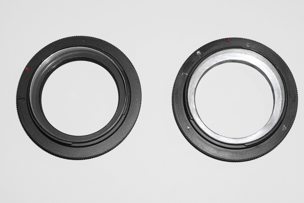 Für den entfernten Bereich nutze ich einen umgebauten M42 Adapter mit einer Vertiefung von ca. 1mm im vollen Tubusumfang, und im Bereich von 1-3 Meter nutze ich einen zweiten, unbearbeiteten M42 Adapter.