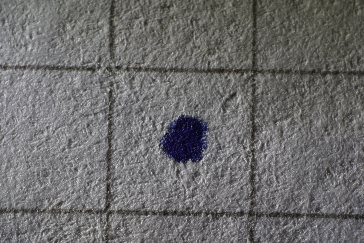 Hier ein Karopapier mit blauem Punkt, Blende 11 (ooc, skaliert):