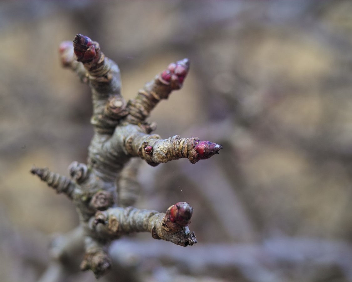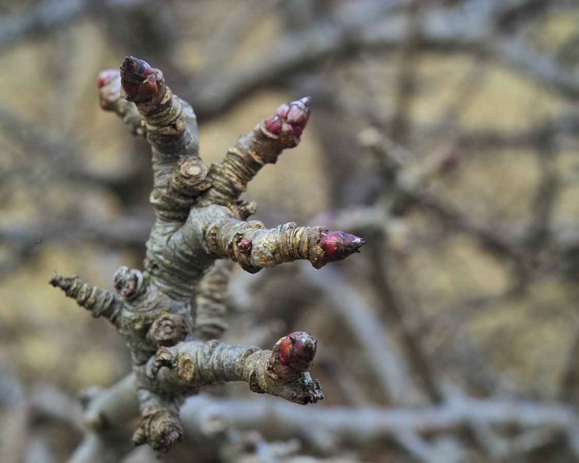 Gestern nun Erstlicht an Apfelknospen: