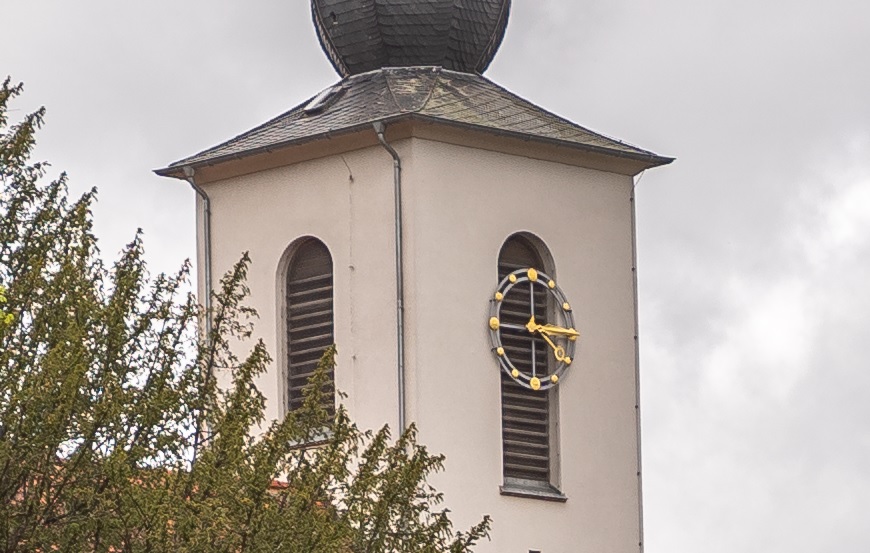 100%-Crops von der Kirchturmuhr: