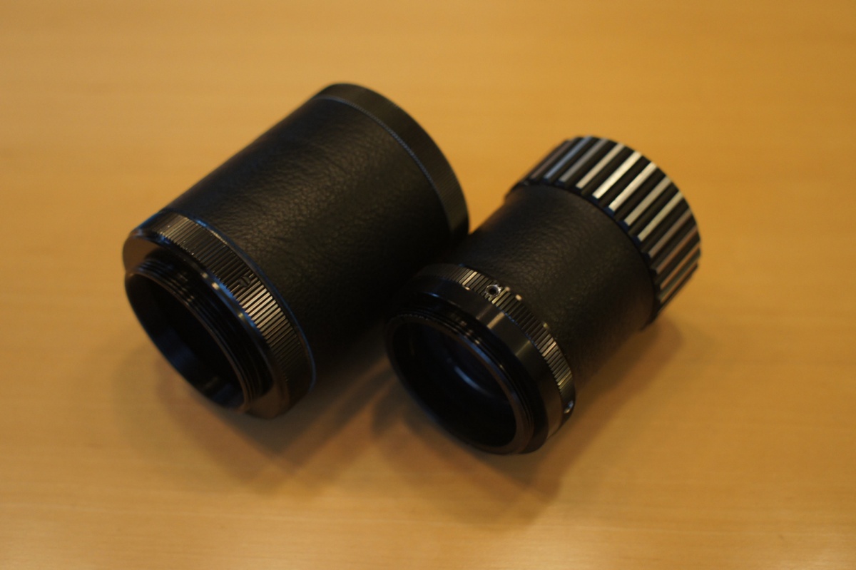 Hier das Diaplan 2,8/100 mit oben gezeigter T2-M42 Adaption nun ganz in Leder zusammen mit dem Super Stellar: