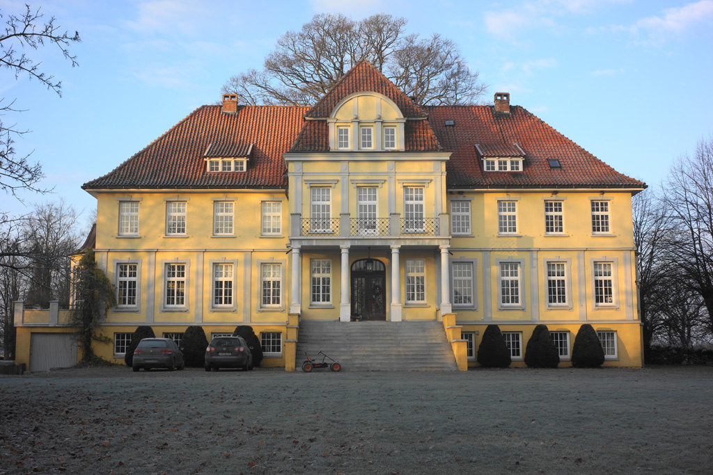 In den Bildern des Herrenhauses und des Hühnerstalls sieht man, dass dieses Objektiv zum Rand hin nur minimale Abfälle in der Leistung hat, was vorher ohne diesen Tubus etwas schlechter war, weil das "Geschlacker" im Adapter manchmal dazu führte.