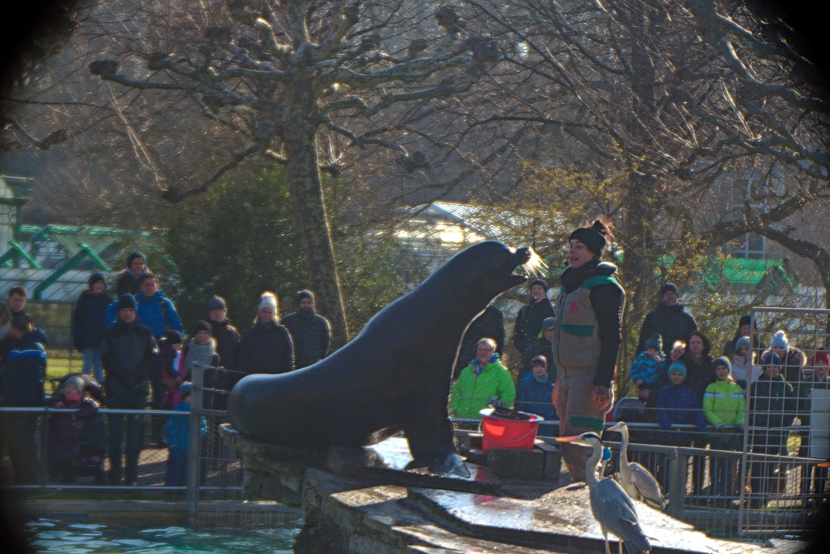 #1: Seelöwenfütterung in der Wilhelma bei Gegenlicht