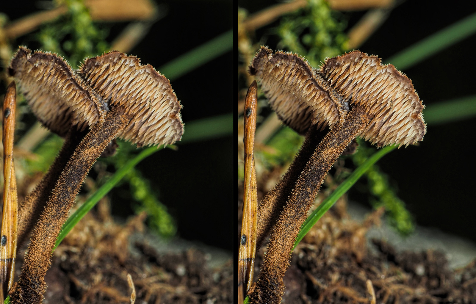 Sony A7r3, UV Topcor f3.5 35mm at f11 and minimum focus distance. This flower is about the size of the palm of my hand. I have cropped a bit off the right side of the individual images before making the stereo.