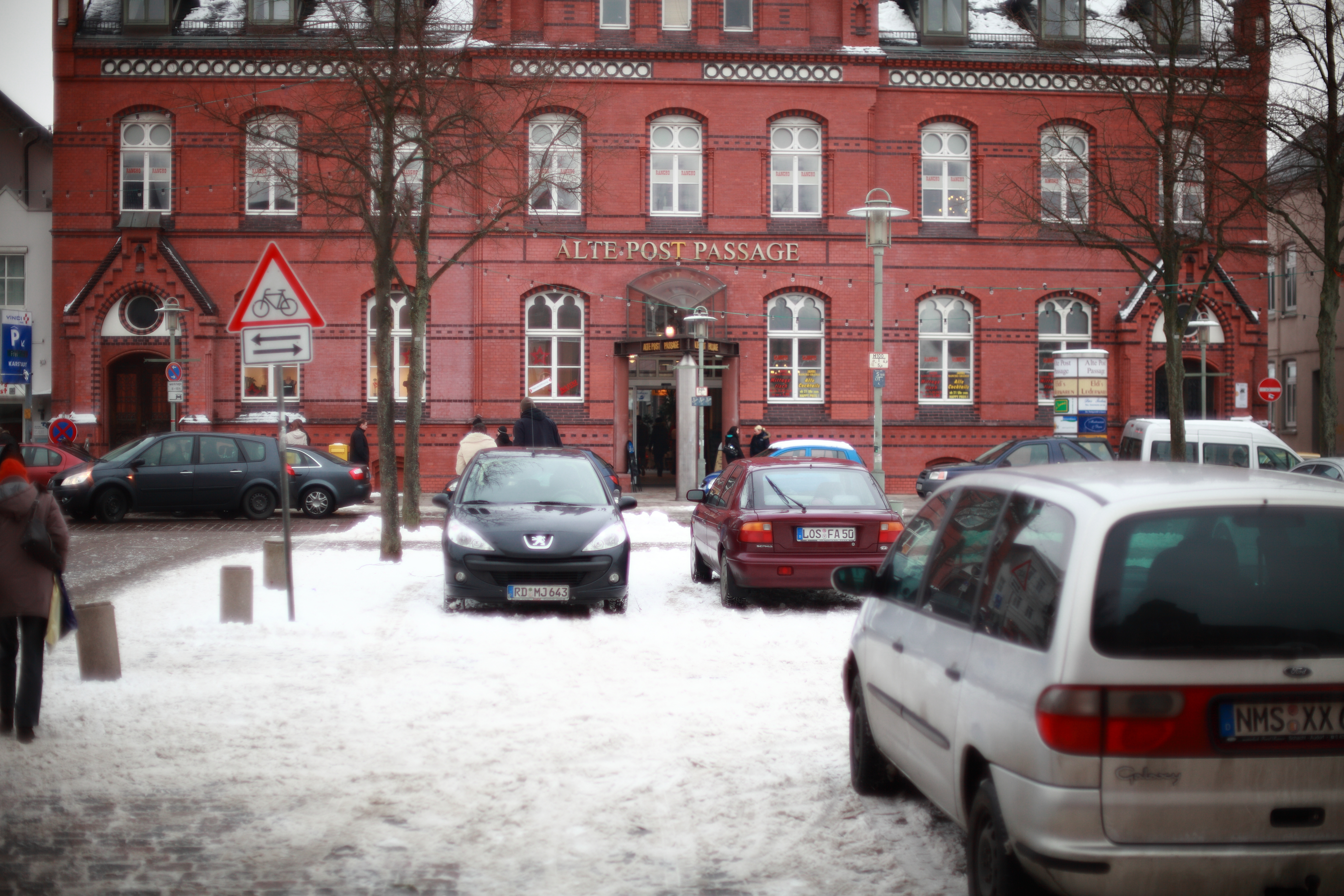 Hier nochmal ein weiteres Bild, wo der Fokus nicht komplett auf unendlich ausgerichtet ist, sondern an den Autos klebt... Überstrahlungen sind immer noch da, aber im Schnee längst nicht so dramatisch wie in den auf Unendlich fokusierten Bildern. Die Kontrastübergänge schwarzes Auto zu den metallic-Reflexen.. da glüht das Teil. Aber die Schneekanten sind auf dem verkleinerten Bild bei 800 Pixeln zu vernachlässigen.