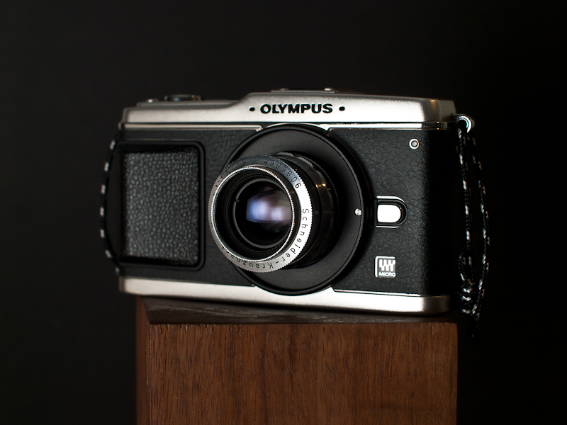 Und so sieht der Winzling mit seinen 36mm Durchmesser und 28mm Länge aus an der E-P1: