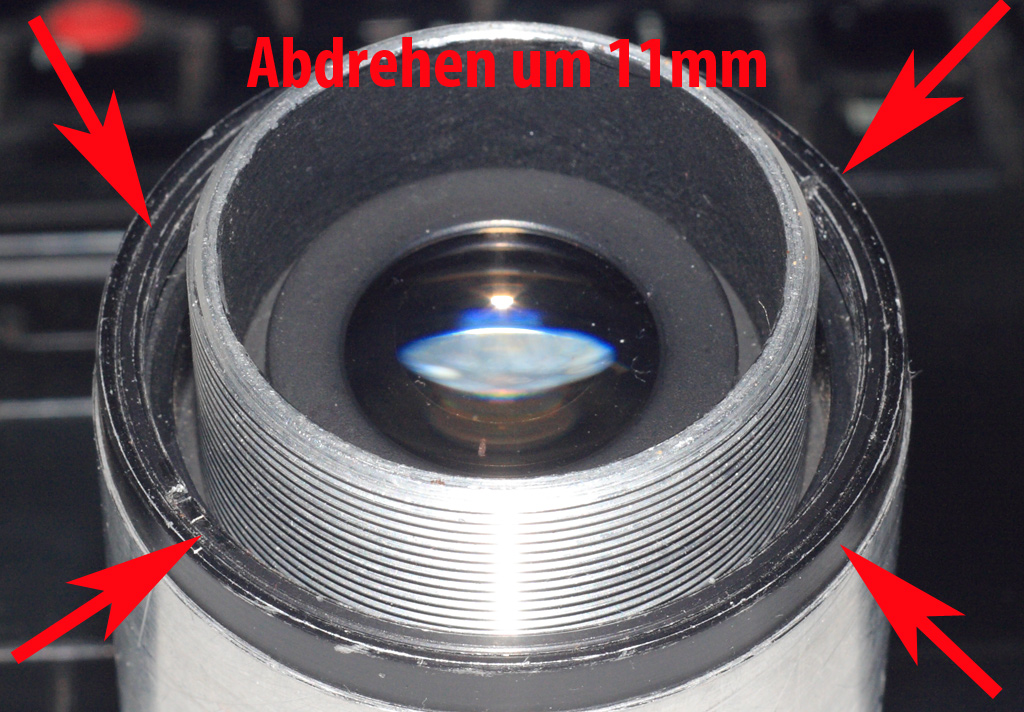 Hierzu muss genau der beschriebene Teil heruntergedreht und geweitet werden im Lochdurchmesser für die Rücklinse.