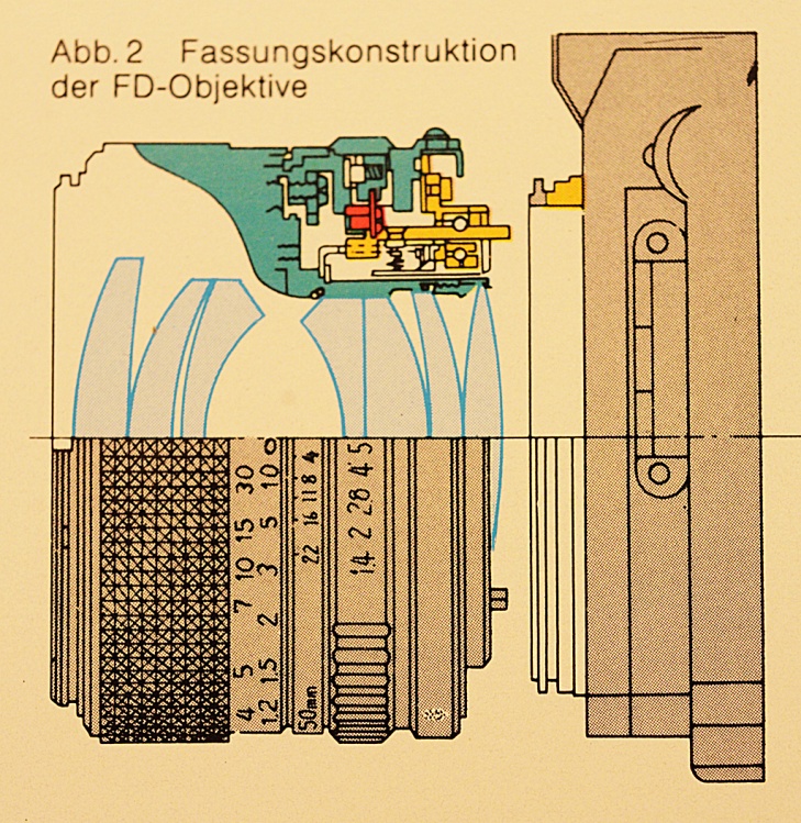Auf dieser Seite gibt es eine leider nur sehr kleine Schnittbildzeichnung des FD 1.4/50 S.S.C.: