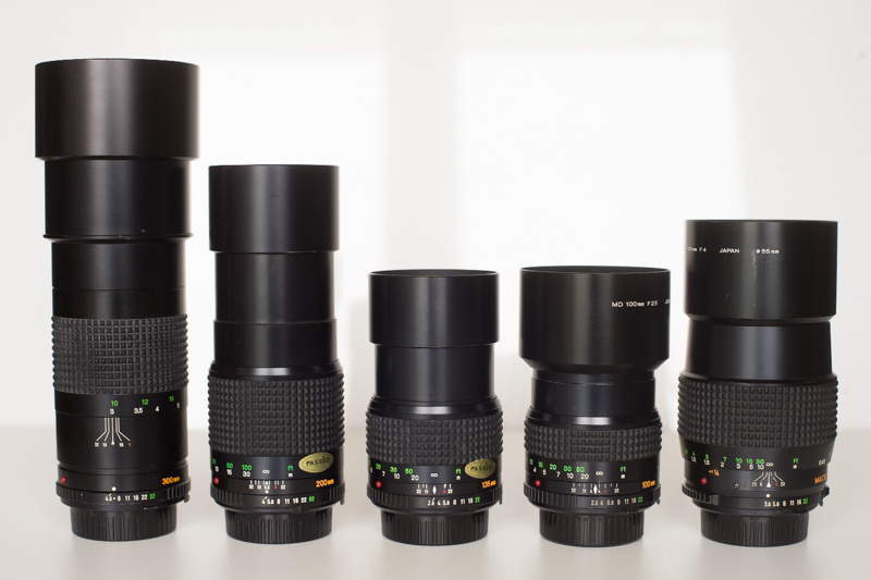 Für dieses Jahr habe ich mir vorgenommen hier einige Minolta Tele-Objektive vorzustellen. Das Gruppenbild der Kandidaten: