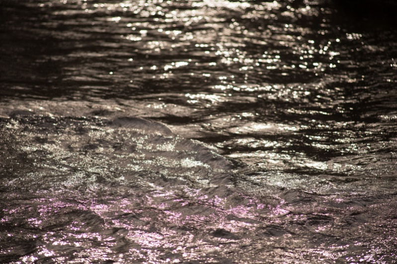 Bei Gegenlicht werden Spitzlichter als keine Kreise mit grünen Rändern und teilweise magenta Füllung abgebildet. Hier ein extremes Beispiel von fließendem Wasser gegen die tief stehende Sonne fotografiert: