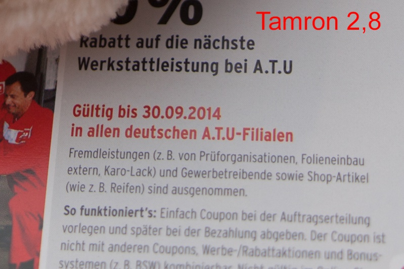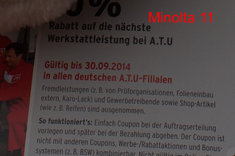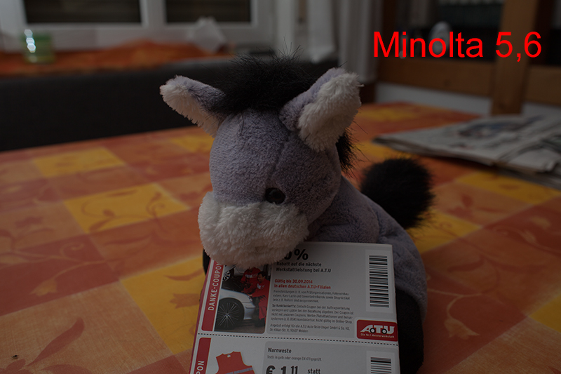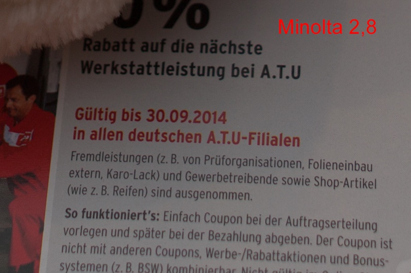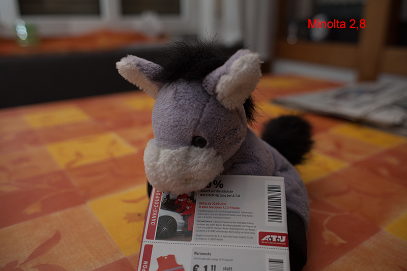 Obwohl das Minolta noch eine Drittel Blendenstufe mehr Licht einfängt (33%) starte ich bei Blende 2,8 mit allen: