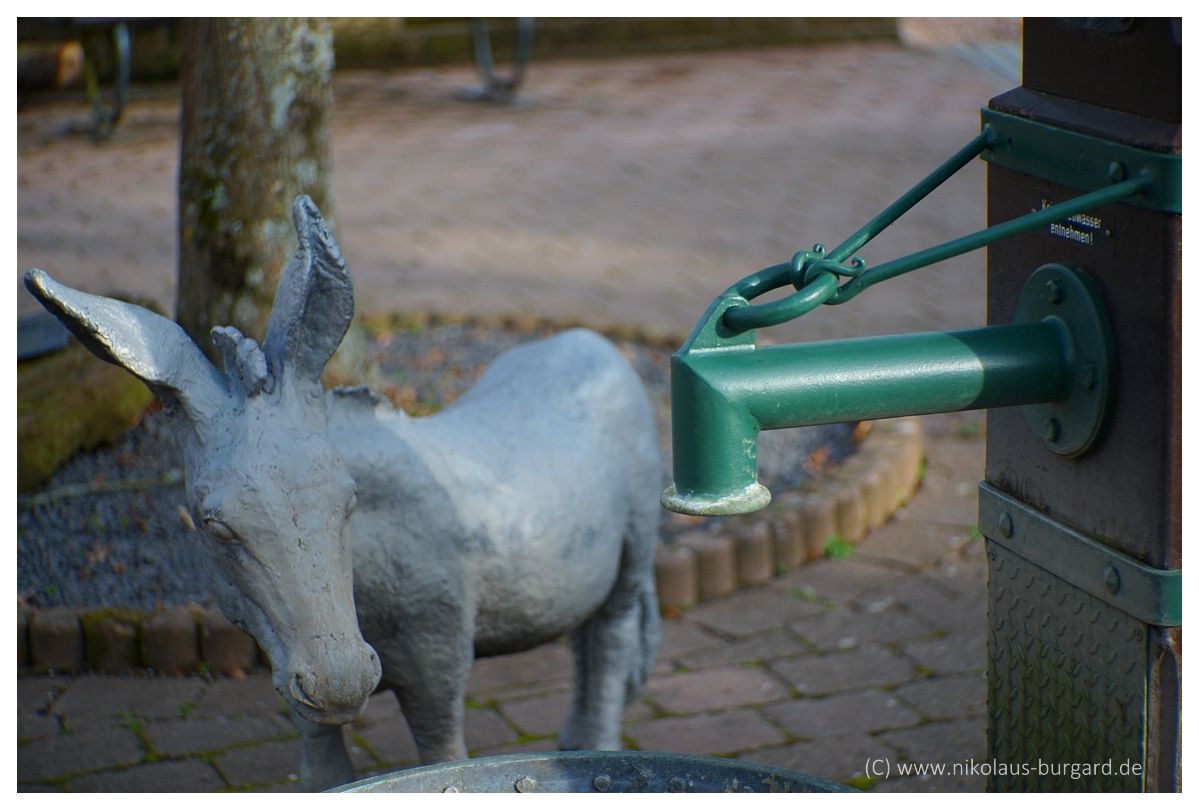 Mein Portrait-Esel darf natürlich nicht fehlen! Beim 1. Bild fokussiert aufs Auge, beim 2. Bild aufs "Kein Gießwasser entnehmen"-Schild.