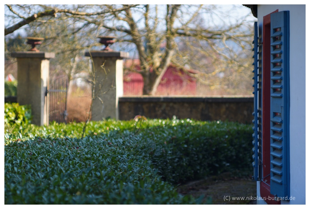 Die Schärfe in den Randbereichen kann man als wirklich gut beschreiben, wie man an folgendem Bild sieht. Der Fokus liegt auf dem rechten Fensterladen.