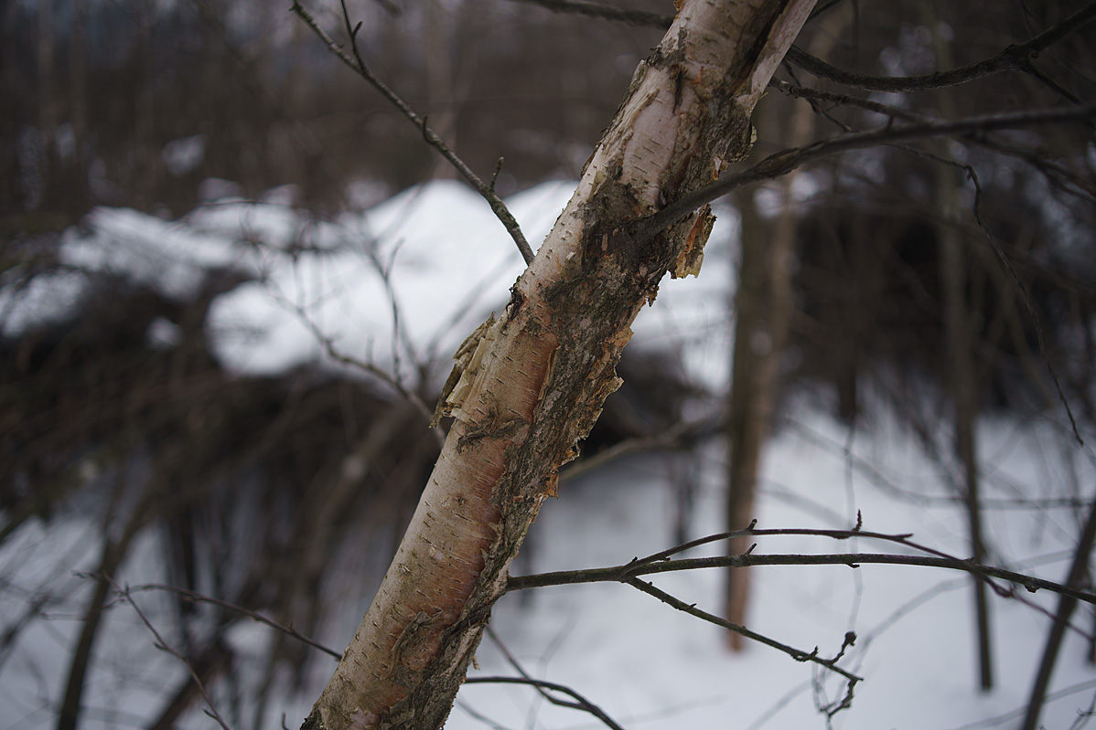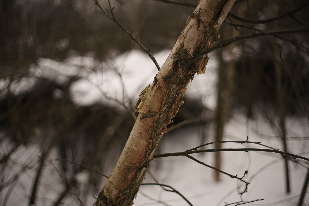 Heute hatte ich mal wieder alle drei Objektive im Fotorucksack. Mein "3D-Motiv", ein dicker abgebrochener Ast zwischen zwei eng bei einander stehenden Bäumen wurde weggeräumt. Ich habe aber ein Motiv gefunden, dass zumindest einen ähnlichen Effekt versprach und mit allen drei Objektiven bei Blende 2.8 fotografiert: