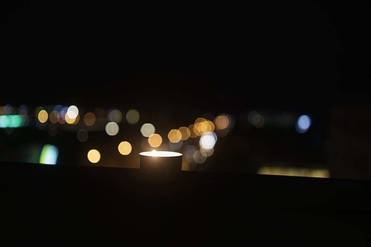 Für einige ist sicher auch interessant, wie die Unschärfekreise der Objektivbe aussehen. Dafür habe ich eine Kerze (als Fokuspunkt, wenn auch nicht immer exakt getroffen) auf das Balkongeländer gestellt und die Straßenbeleuchtung, Leuchtwerbung und vorbeifahrende Autos als Hintergrund genutzt. Die Objektive wurden auf Nahgrenze eingestellt und über eine Makroschiene auf den richtigen Abstand zur Kerze gebracht. Beim Quinaron sieht das Bild logischerweise anders aus, weil es eine viel geringere Nahgrenze hat als die anderen beiden. Nächste kleine Überraschung: Wie auch andere Zeiss-Objektive aus der Zeit (z.B. Planar 1.4/85 C/Y) erzeugt auch das Distagon leichte Sägezähne.