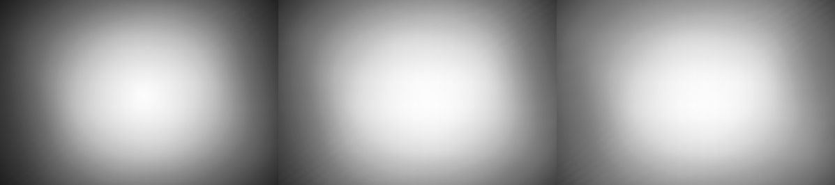 Die Vignettierung bei f/1,8, f/2.8 und f/4. Bei Offenblende recht heftig, aber ab f/4 dann OK.