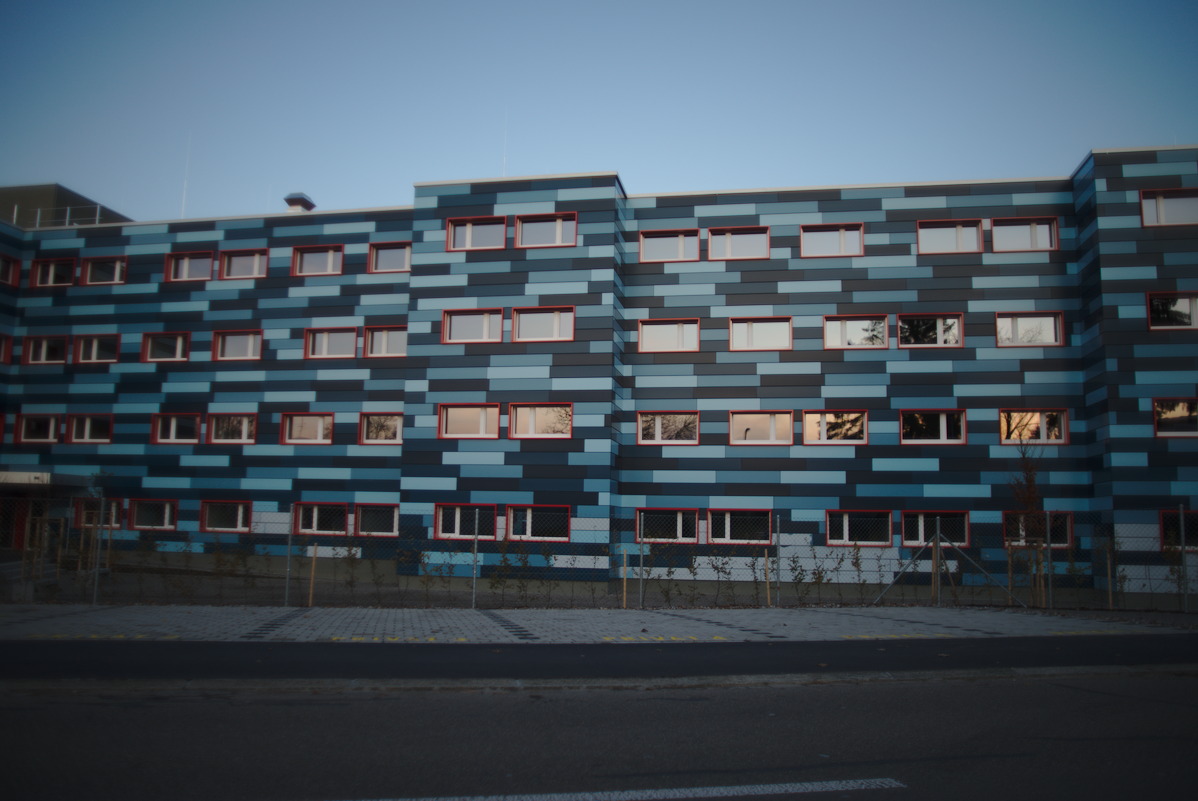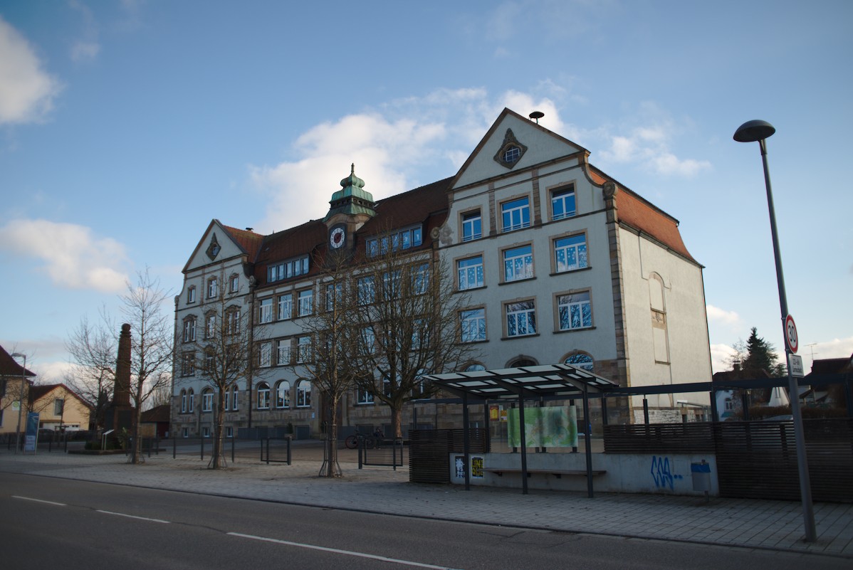 Schulhaus in Jestetten bei f/2.8 und unbearbeitet: