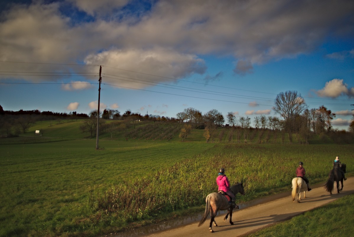 Reitergruppe und bearbeitet. Solche Bilder sollte man nicht unbedingt bei Offenblende schiessen, aber die Stimmung gefällt mir: