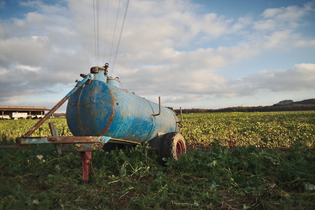 Ein Wasserwagen auf der Weide in f/2,8 und in der Belichtung bearbeitet, sowie die Schatten aufgehellt: