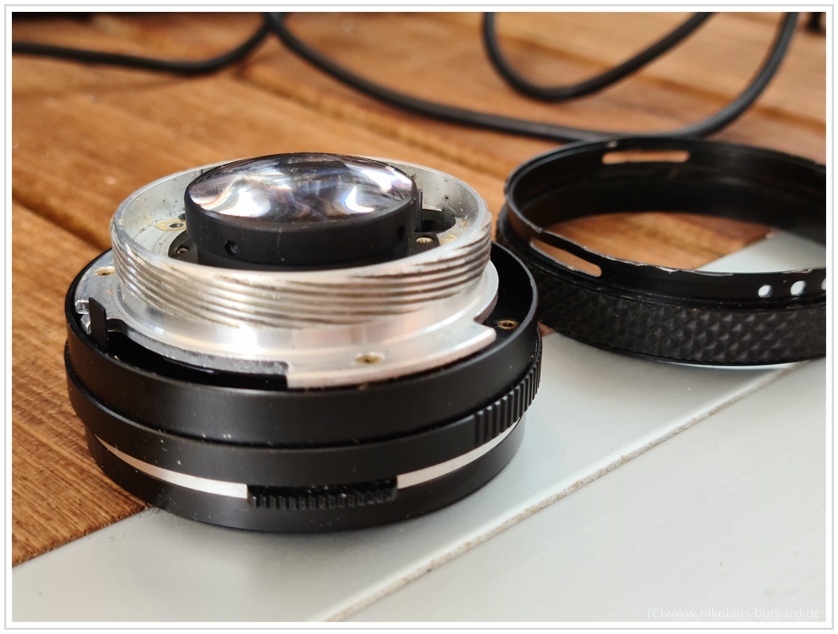 Ich habe dann den äußeren Ring zur Fokussierung entfernt, dann sieht das ganze so aus: