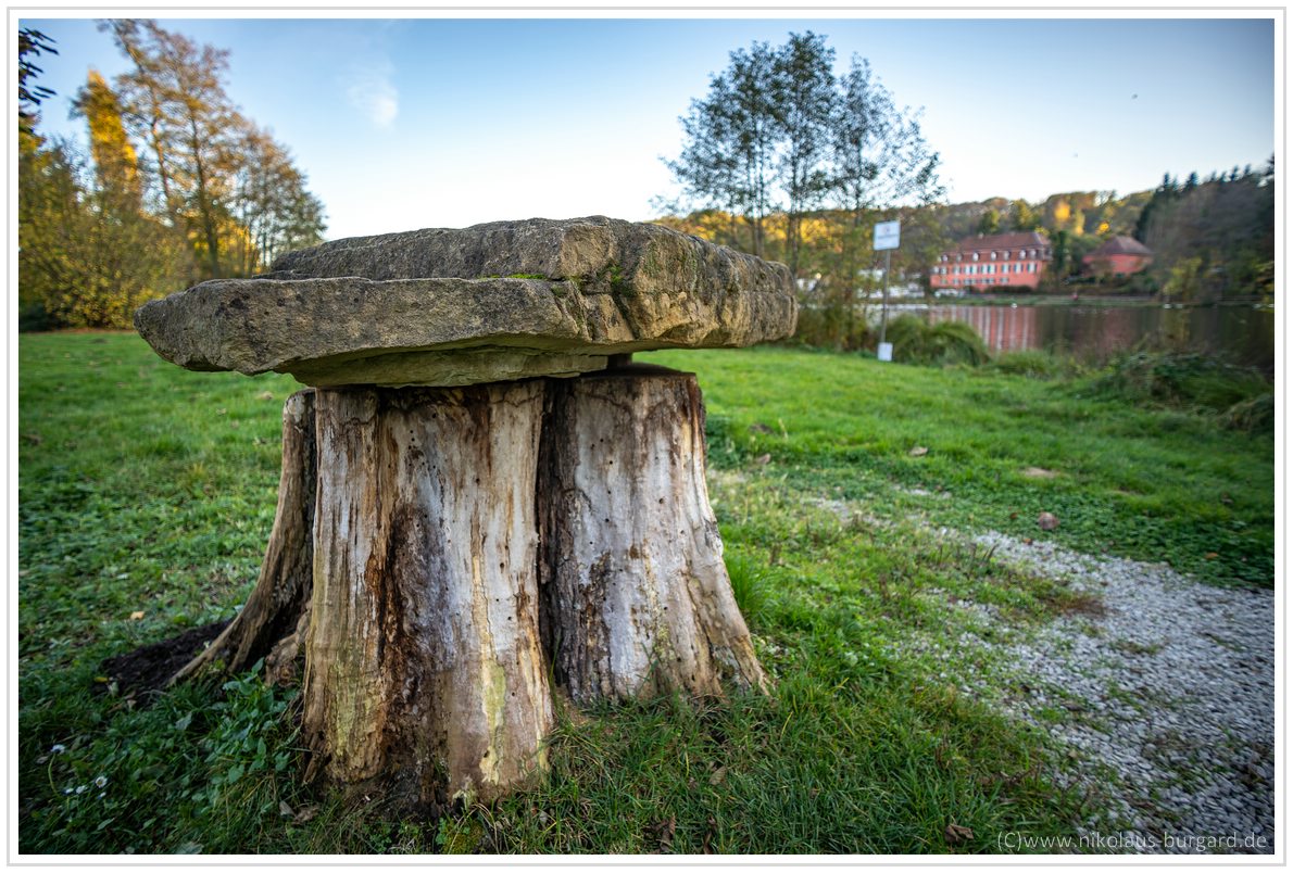 #7 + #8 Blendenpaar bei f2.8 und f8, Fokus auf dem Abschlußstein auf dem Stumpf: