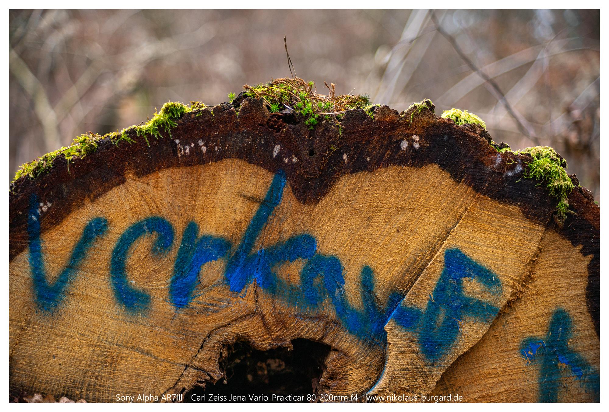 #38 80mm f4 - Fokus auf den aufgesprühten Baumbeschriftungen rechts
