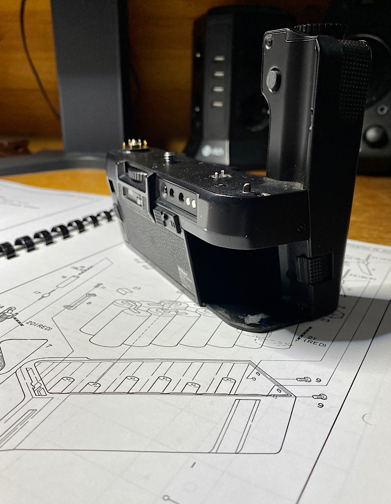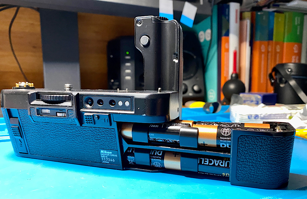 Wenn ich die Kontakte im Motor Drive reinige, funktioniert er vielleicht wieder. Mit einem Batteriehalter für AA-Batterien, den es als Alternative zum Akkupack gibt.