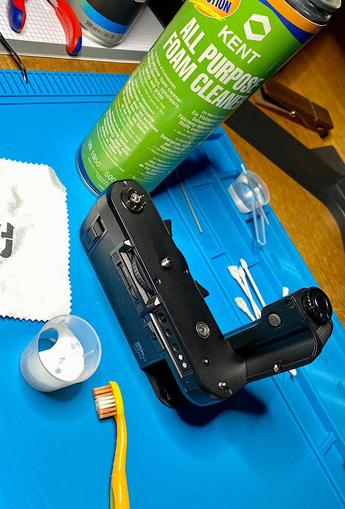 Ein bisschen Putzen der hinteren Leatherette mit Kent Foam Cleaner: